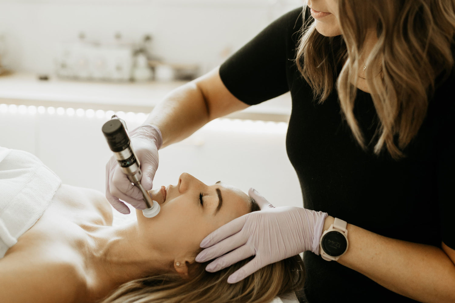 Using a medical grade diamond tip attached to a facial vacuum, microdermabrasion works to remove dead skin while improving blood flow and circulation.